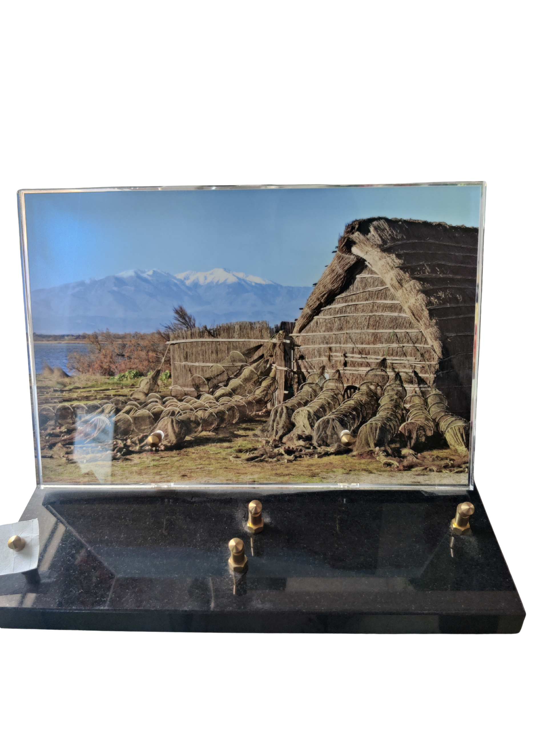 En granit et en verre, cette plaque évoque la tranquillité des bords de rivière ou le goût de la liberté au grand air.